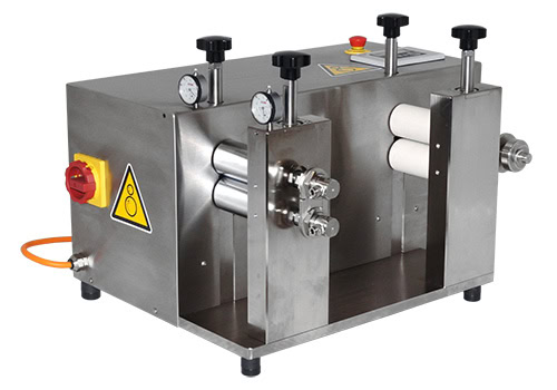 Die Folienwalze von Three-Tec ermöglicht das Kalibrieren von flachen, trockenen Extrudaten. Des Weiteren können auch runde Extrudate zu einer Folie mit definierter Dicke ausgewalzt werden.